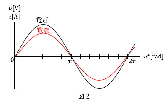 抵抗の場合,電圧と電流とで位相差は生じません(図\( \ 2 \ \))。