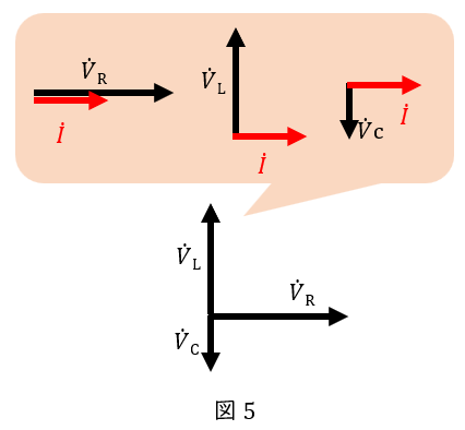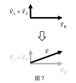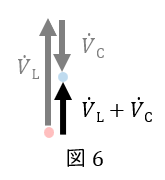 今回の場合\( \ \dot{V_{\mathrm {L}}} \ \)と \( \ \dot{V_{\mathrm {C}}} \ \)が一直線上にあるので,これらを足しましょう(図\( \ 6 \ \))。