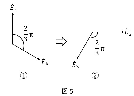 例えば\( \ \dot{E_{\mathrm {a}}} \ \)を基準ベクトルと決めて,これが右向きになるように回転します(図\( \ 5 \ \))。