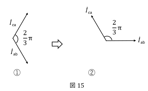 例えば\( \ \dot{I_{\mathrm {ab}}} \ \)を基準ベクトルと決めて,これが右向きになるように回転します(図\( \ 15 \ \))。
