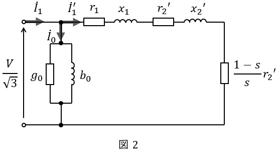 \] となる。ただし,\( \ Z=\sqrt {\left( \displaystyle r_{1}+\frac {{r_{2}}^{\prime }}{s} \right) ^{2}+\left( x_{1}+{x_{2}}^{\prime }\right) ^{2}} \ \mathrm {[\Omega ]} \ \)とする。