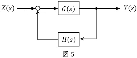 (1)と同様に,\( \ W(s) \ \)は図5のフィードバック制御系の伝達関数に\( \ G(s)→G_{A}(s)G(s) \ \),\( \ H(s)→H(s) \ \)を代入すれば良いので,