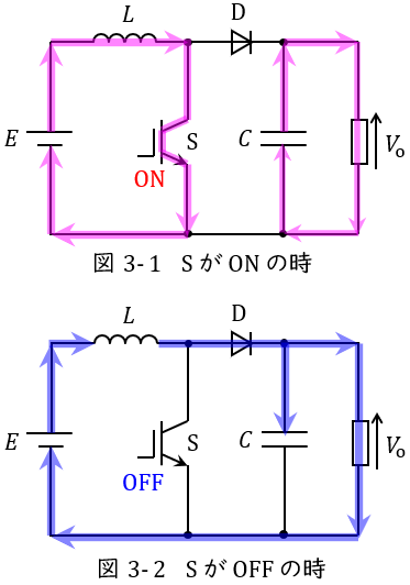 図3-1及び図3-2に昇圧チョッパの例を示します。