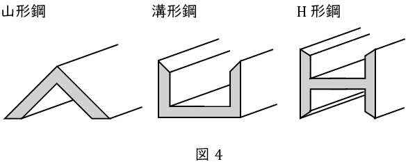 それぞれの形状は図4の通りですが,強度・加工性・経済性等の観点から送電線の鉄塔に使用されているのは山形鋼となります。