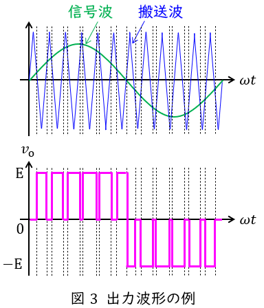 出力波形は図3に示すような波形となり,パルス幅で出力電圧を調整することができます。