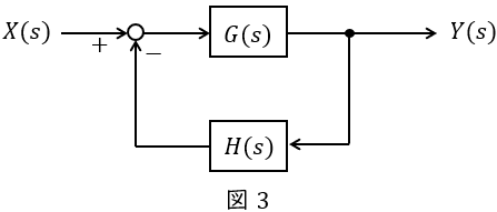 図3のような\( \ G(s) \ \),\( \ H(s) \ \)が与えられているとき,全体の伝達関数\( \ W(s) \ \)は,