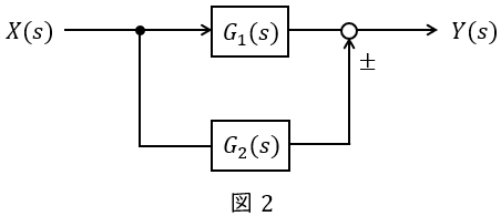 図2のような伝達関数\( \ G_{1}(s) \ \),\( \ G_{2}(s) \ \)が与えられているとき,全体の伝達関数\( \ G(s) \ \)は,