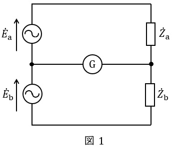 図1のように,ブリッジ回路のうち二つのインピーダンスを電源に置き換えた回路を半ブリッジといい,図1の回路において,検流計Ⓖに電流が流れない平衡条件が成立するとき,