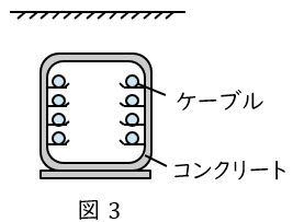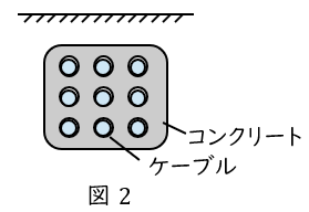 穴を空けたコンクリート内にケーブルを布設する方法です。