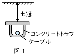 コンクリートトラフにケーブルを入れ,地上から規定された深さまで埋設し土で埋める方式です。