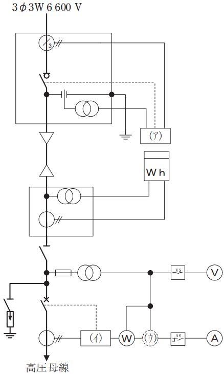 図は,高圧受電設備の単線結線図の一部である。