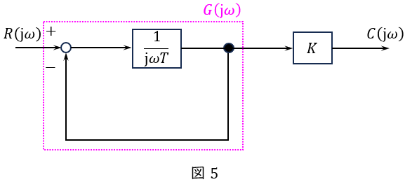 であるから,周波数伝達関数\(W(\mathrm {j}\omega )\)は,