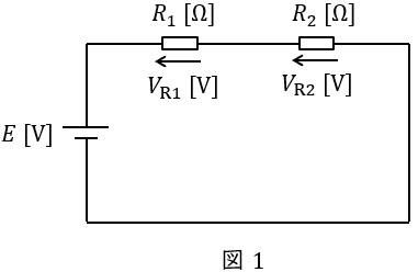 図1に示した直列回路において,各抵抗にかかる電圧は以下の通りとなります。